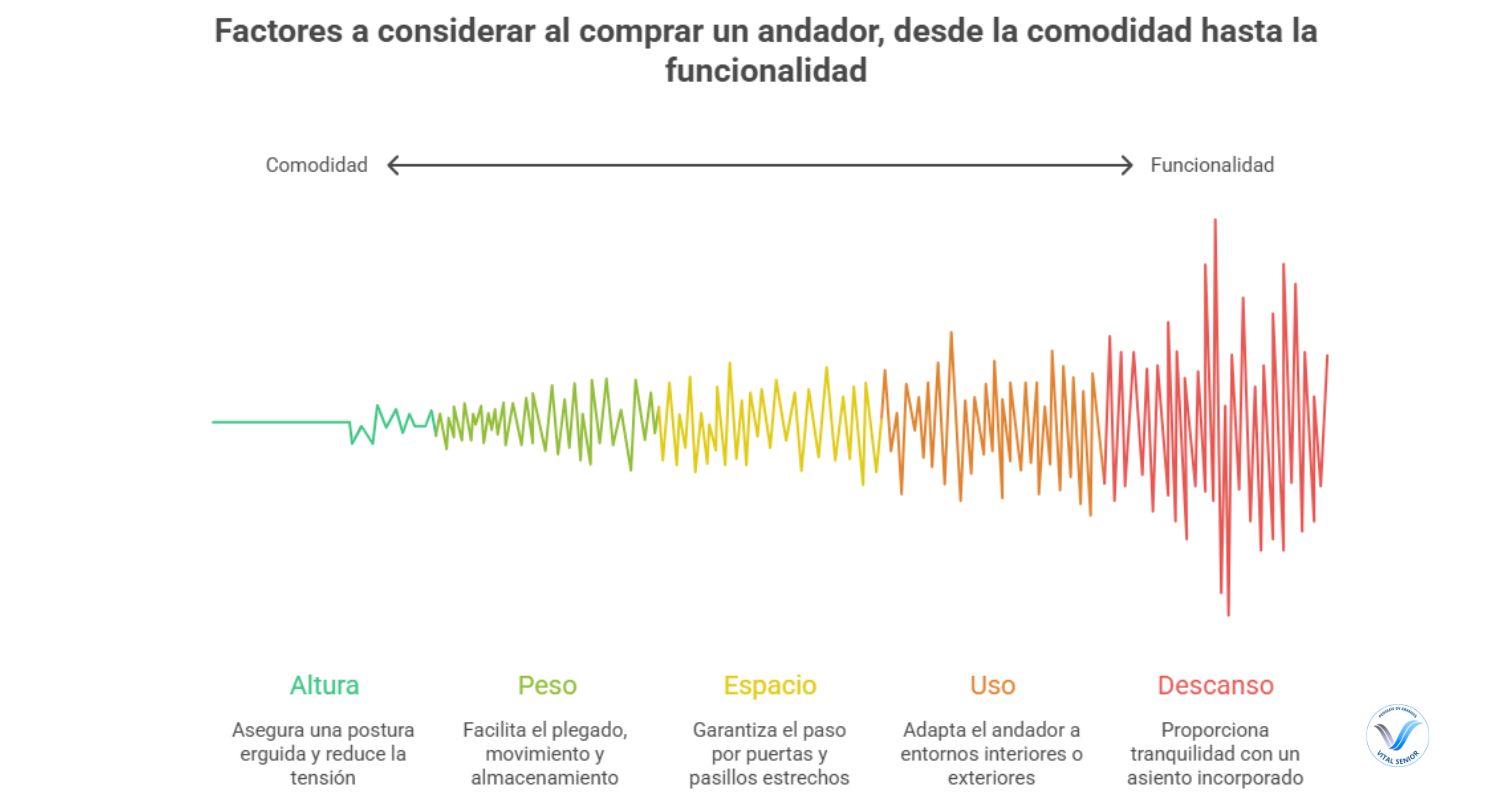 Más allá del tipo de andador, hay varios factores que conviene revisar antes de decidir. Son esos detalles los que después hacen que el uso sea cómodo o incómodo en la práctica.