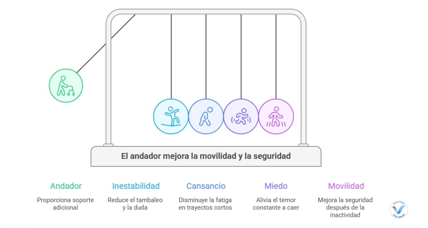 Cuando el modelo se ajusta bien al nivel de autonomía, al entorno y a la rutina real, el andador deja de ser solo un apoyo y se convierte en una herramienta concreta para seguir moviéndose con más confianza.