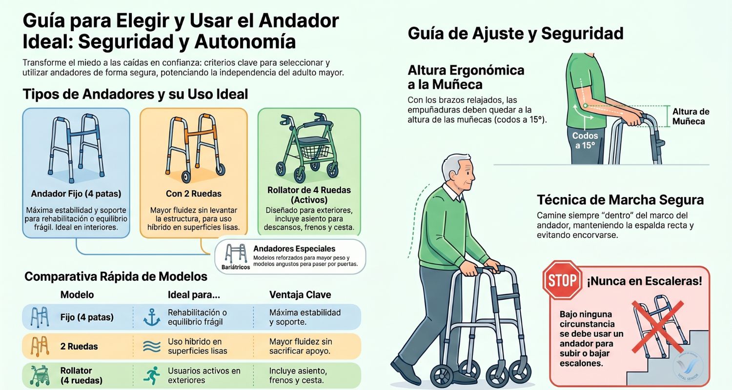 Si estás buscando una solución para ti, para tu mamá, tu papá o una persona mayor a tu cuidado, esta guía te ayudará a elegir con más claridad. Y si ya estás comparando opciones, puedes revisar nuestra categoría de andadores para adulto mayor para entender mejor las diferencias entre un modelo y otro.